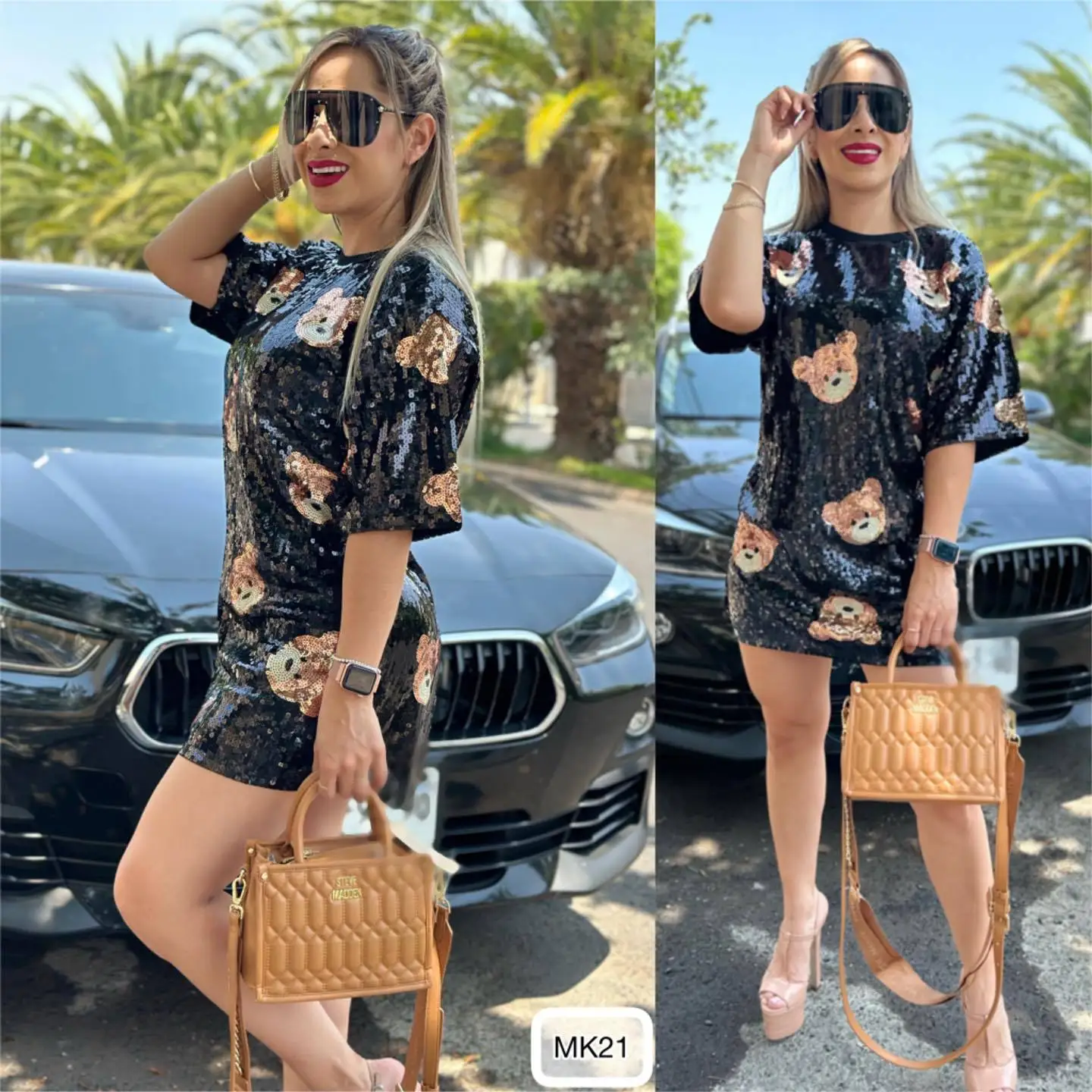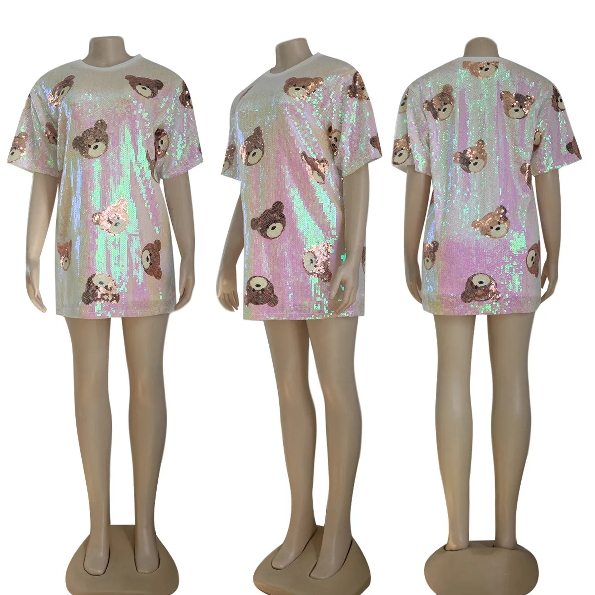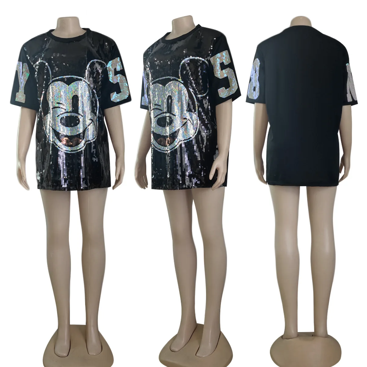 European American Cross-Border Women's Casual Summer Dress Sexy Shiny Heavy-Duty Sequined Short-Sleeved Loose-Fitting